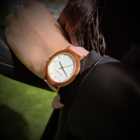 Holzwerk Women's Wooden Watch Modern Wood Leather Watch Pink Gold White