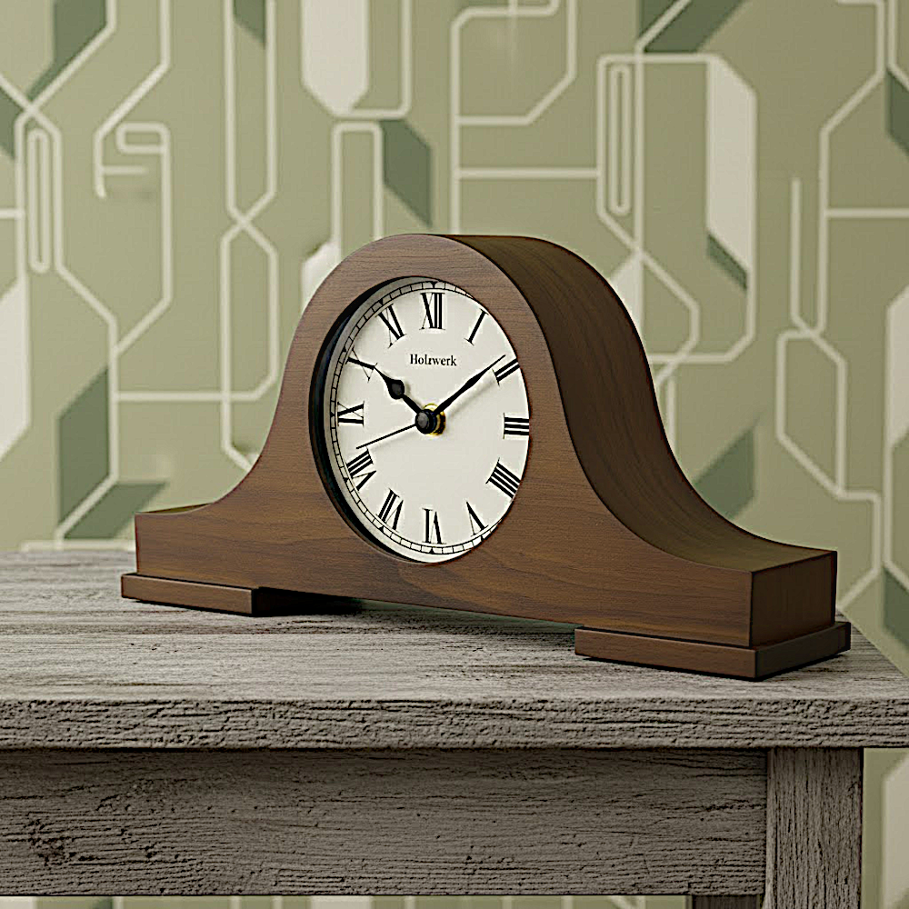 Brechen Sie aus der Monotonie des modernen Designs aus – diese Retro Tischuhr ist ein mutiges Statement für alle, die sich trauen, anders zu sein. Das robuste Holzgehäuse in tiefem Braun kombiniert mit klassischen römischen Ziffern schafft einen unverwechselbaren Look, der Aufmerksamkeit erregt.
