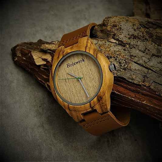 • Holzwerk Damen & Herren Holzuhr Leder Epoxidharz Uhr Braun Grün Gold