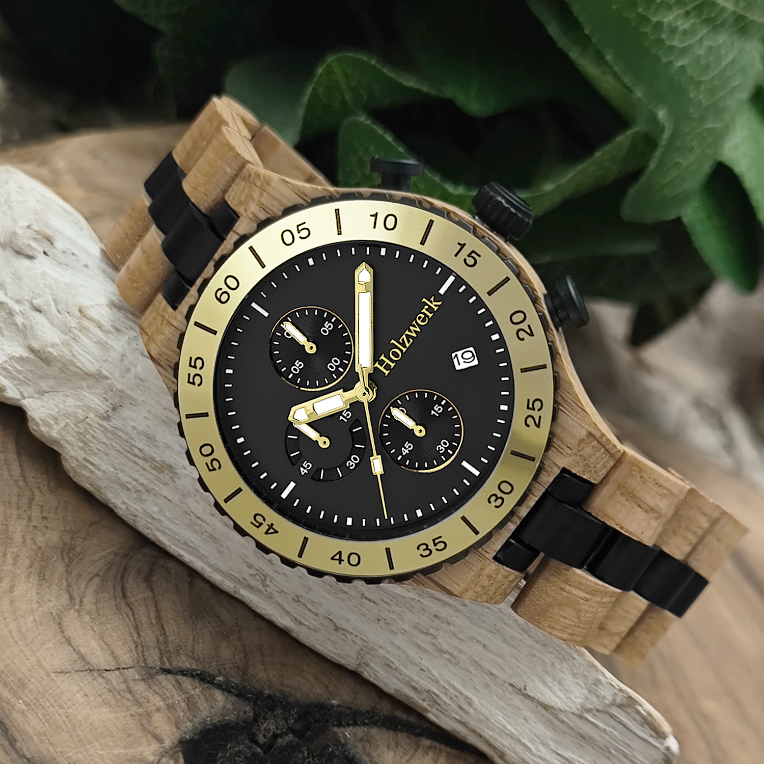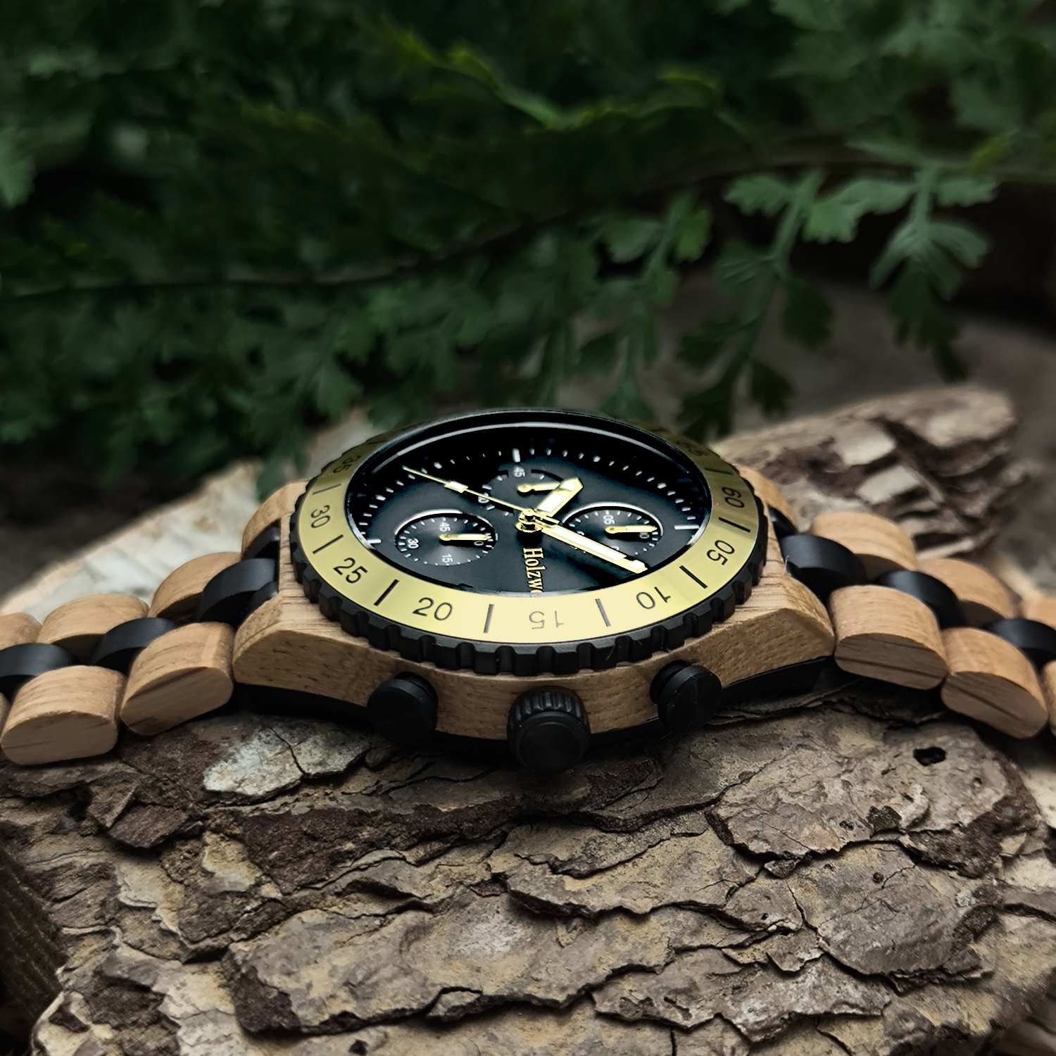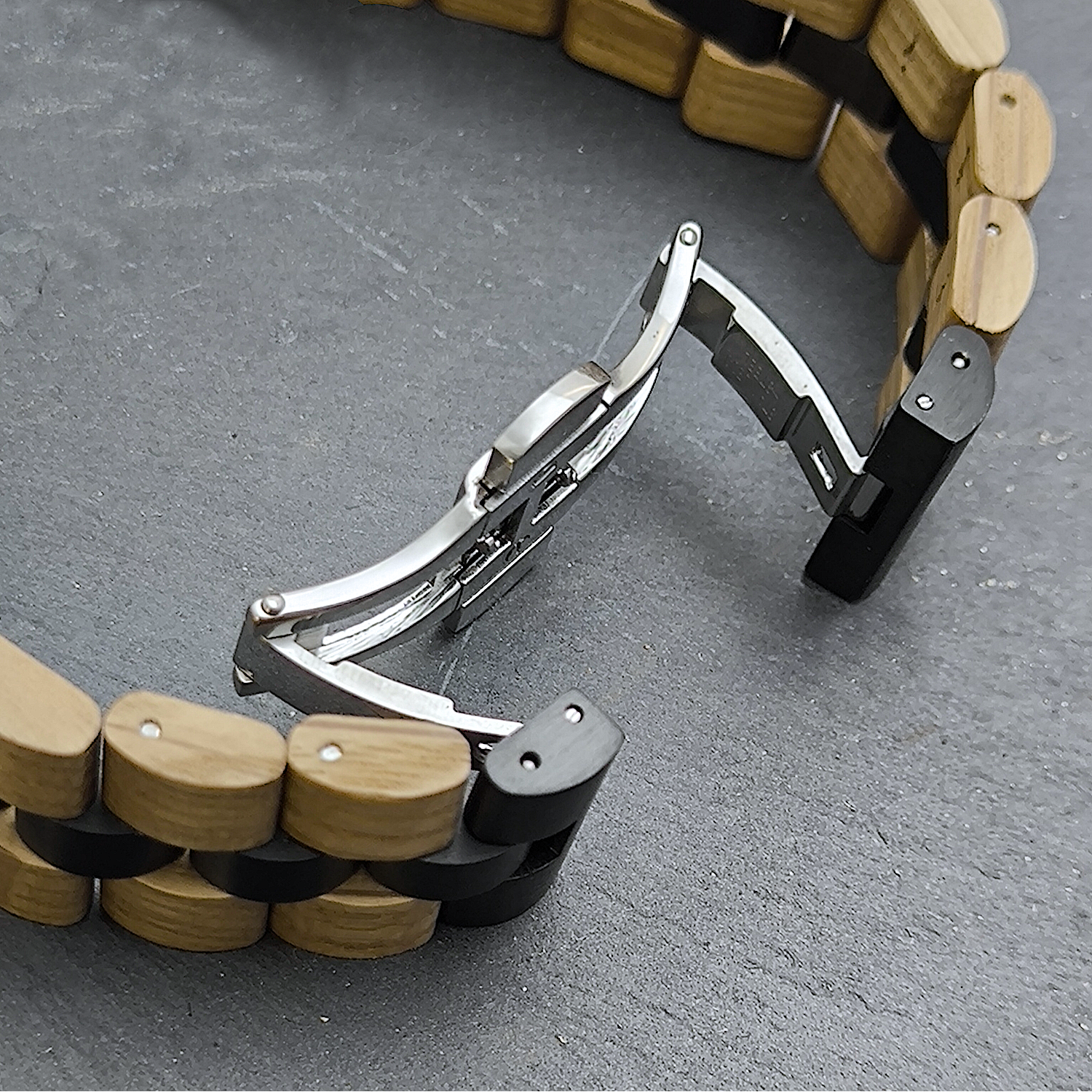 - Armbandmaterial: Holz mit Edelstahlelementen