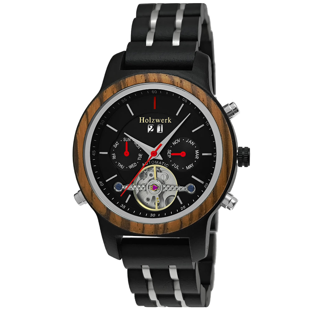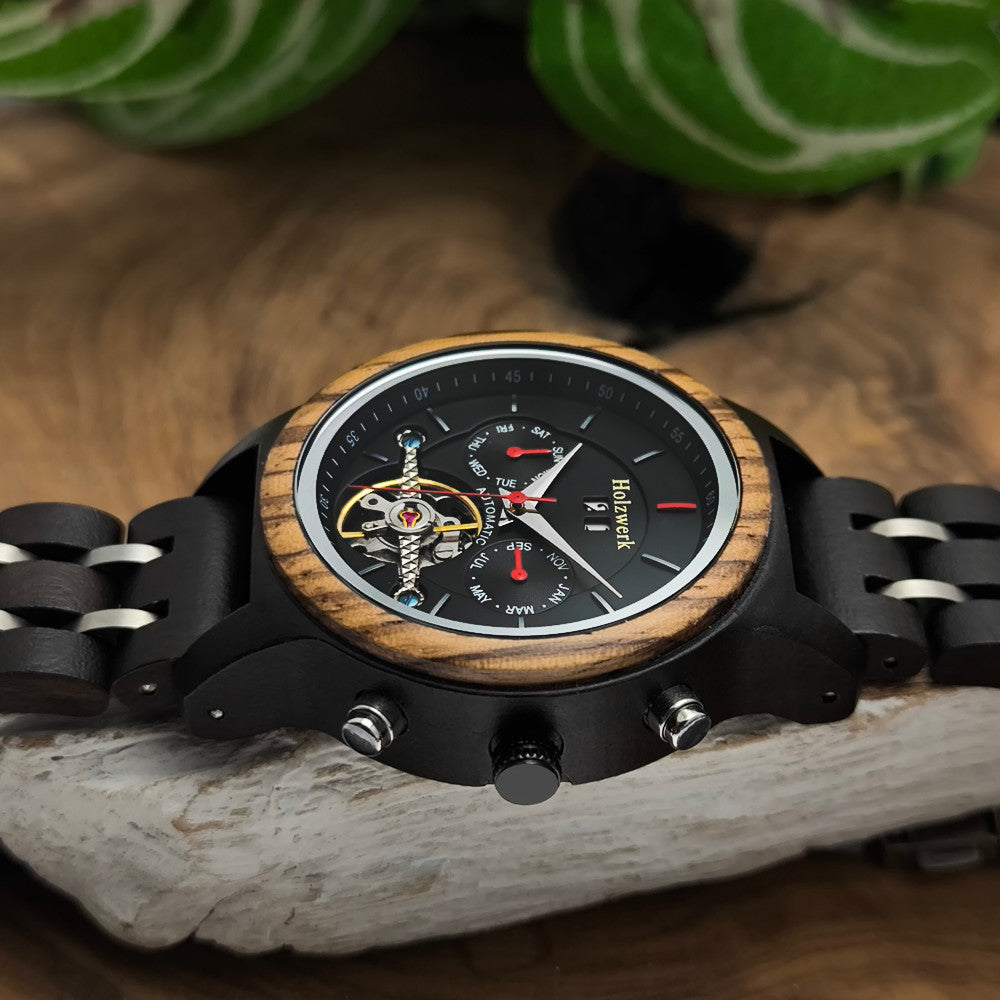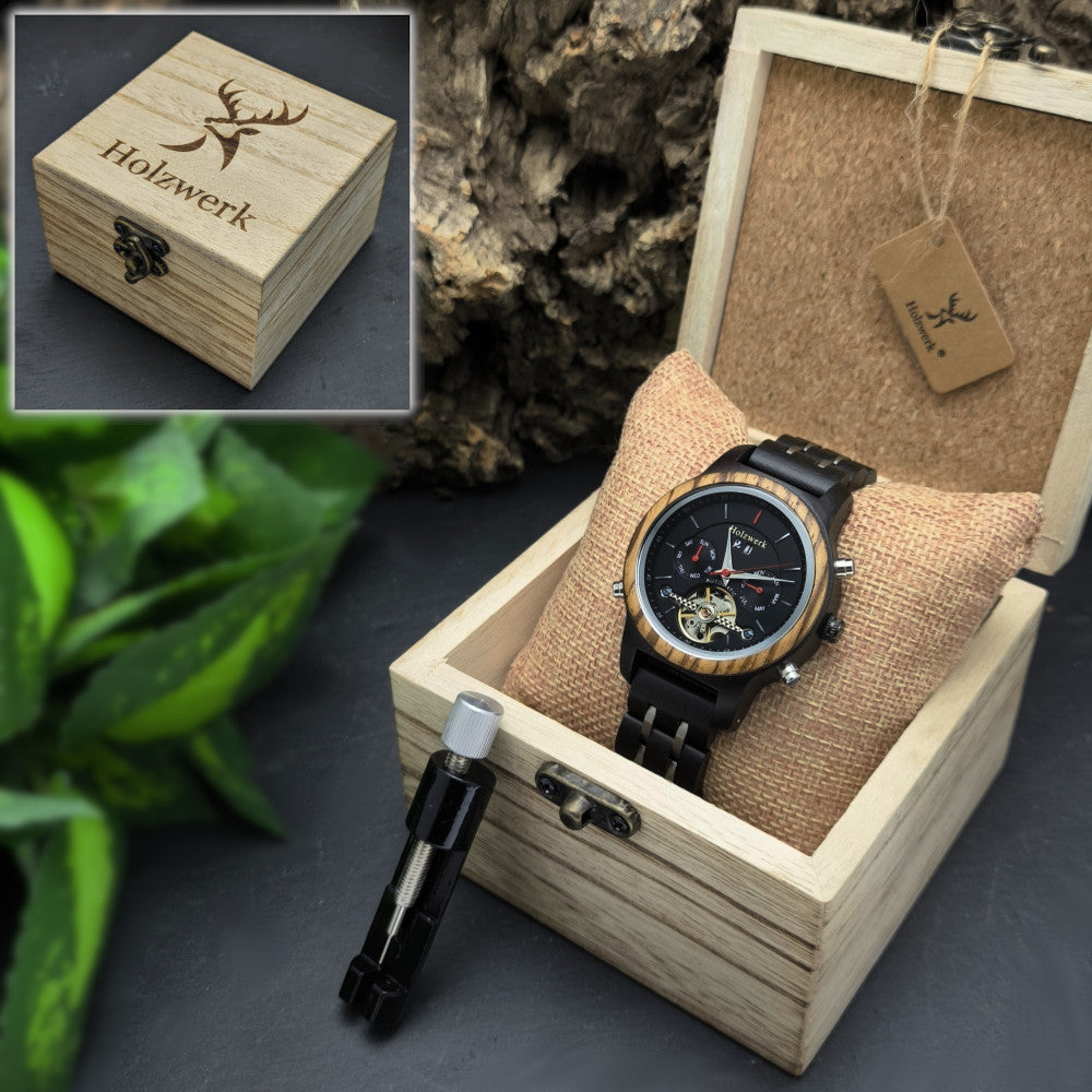 Mouvement automatique (remontage manuel) - La livraison comprend un coffret de montre Holzwerk