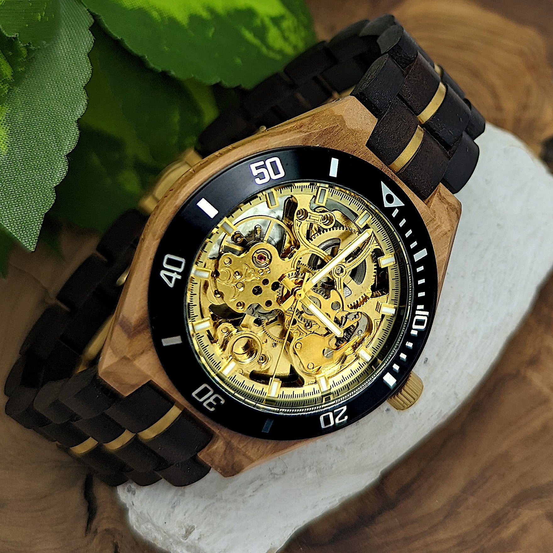 Mouvement automatique (remontage manuel) - La livraison comprend un coffret de montre Holzwerk