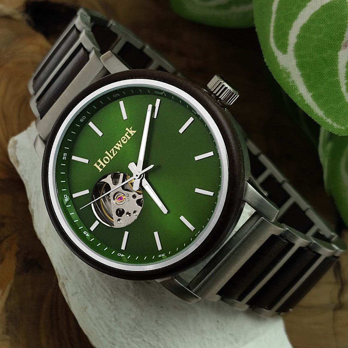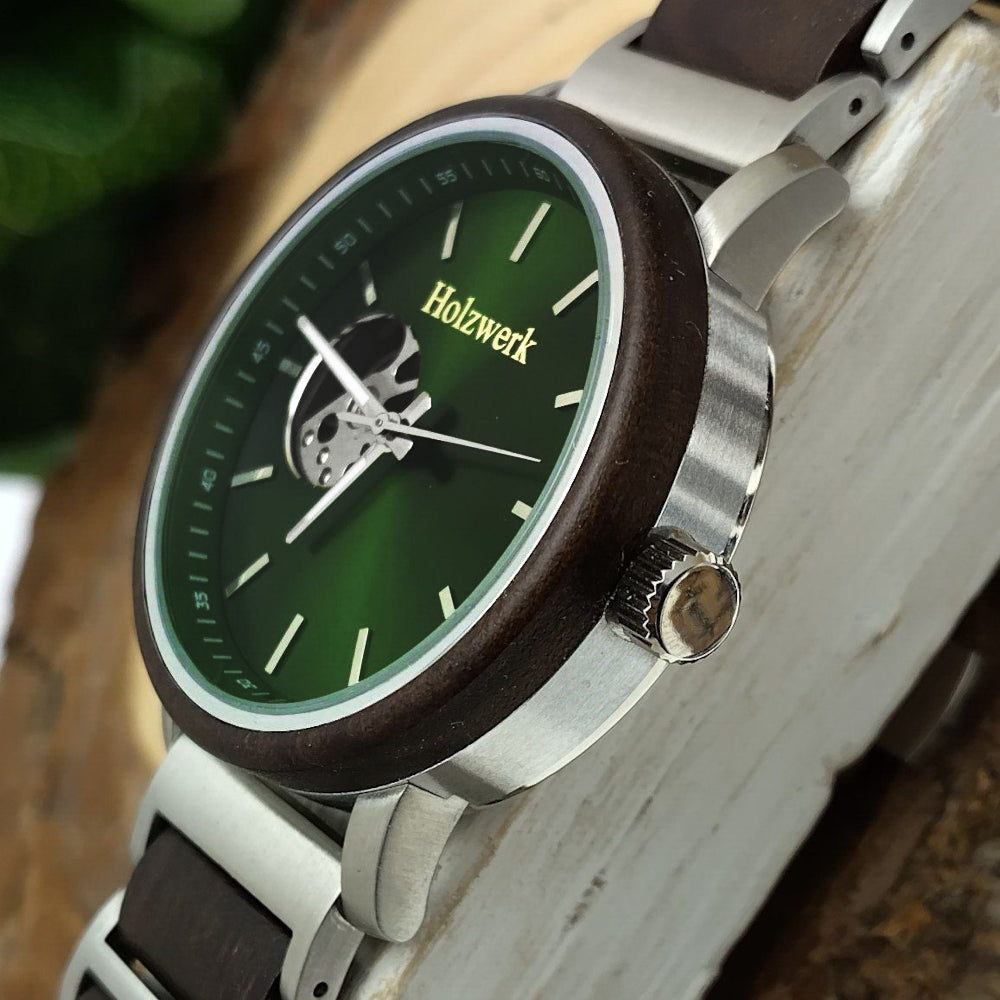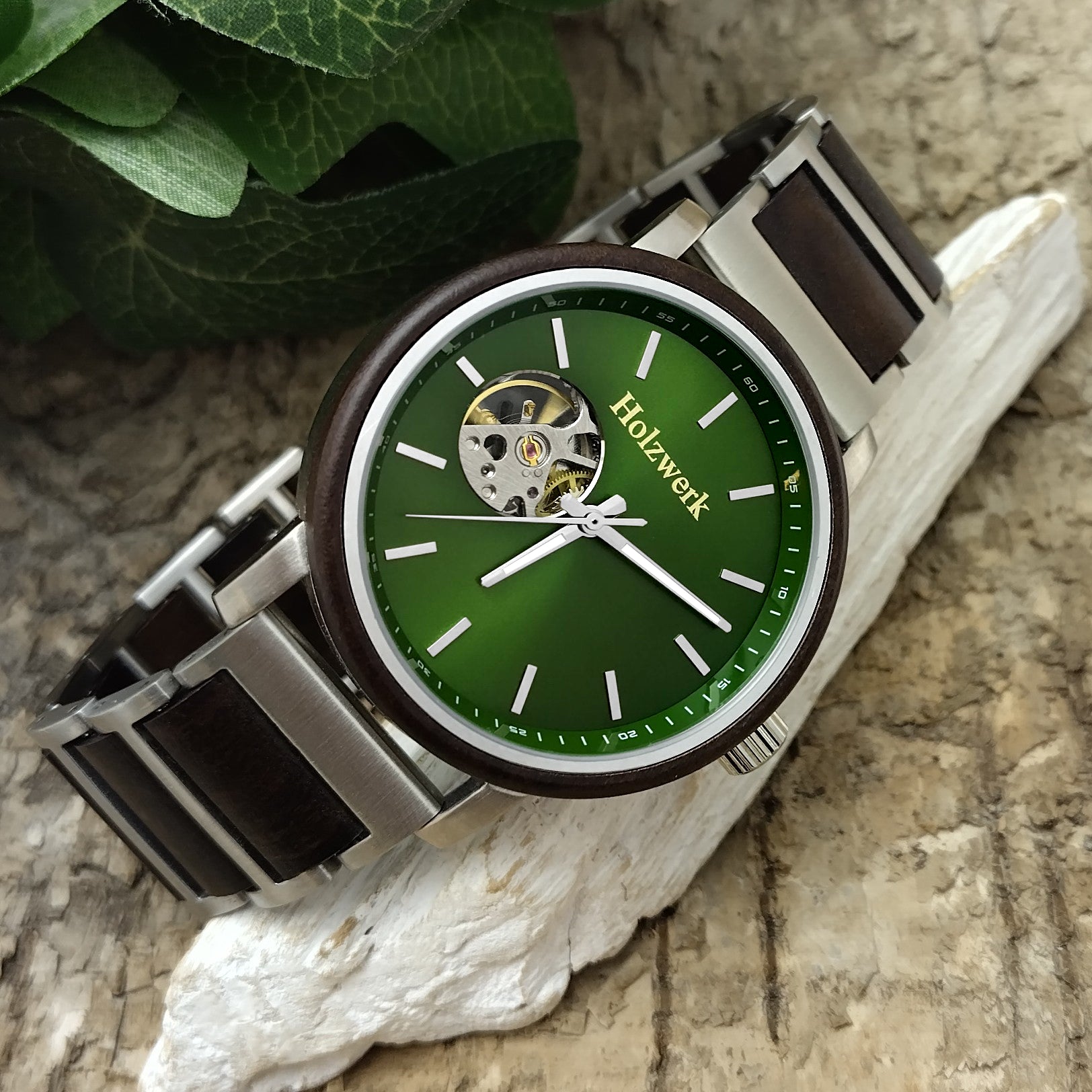 Mouvement automatique (remontage manuel) - La livraison comprend un coffret de montre Holzwerk