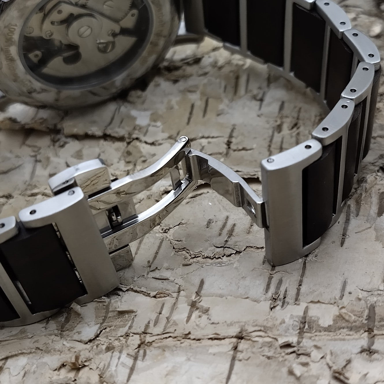 - Matériau du bracelet : acier inoxydable avec éléments en bois