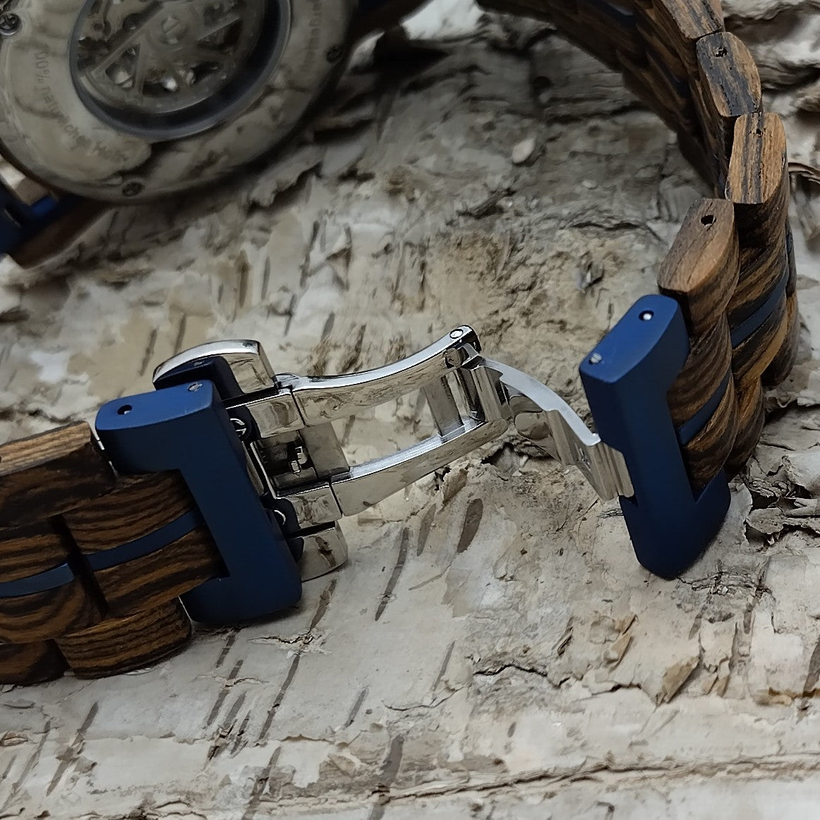 - Matériau du bracelet : bois avec éléments en acier inoxydable