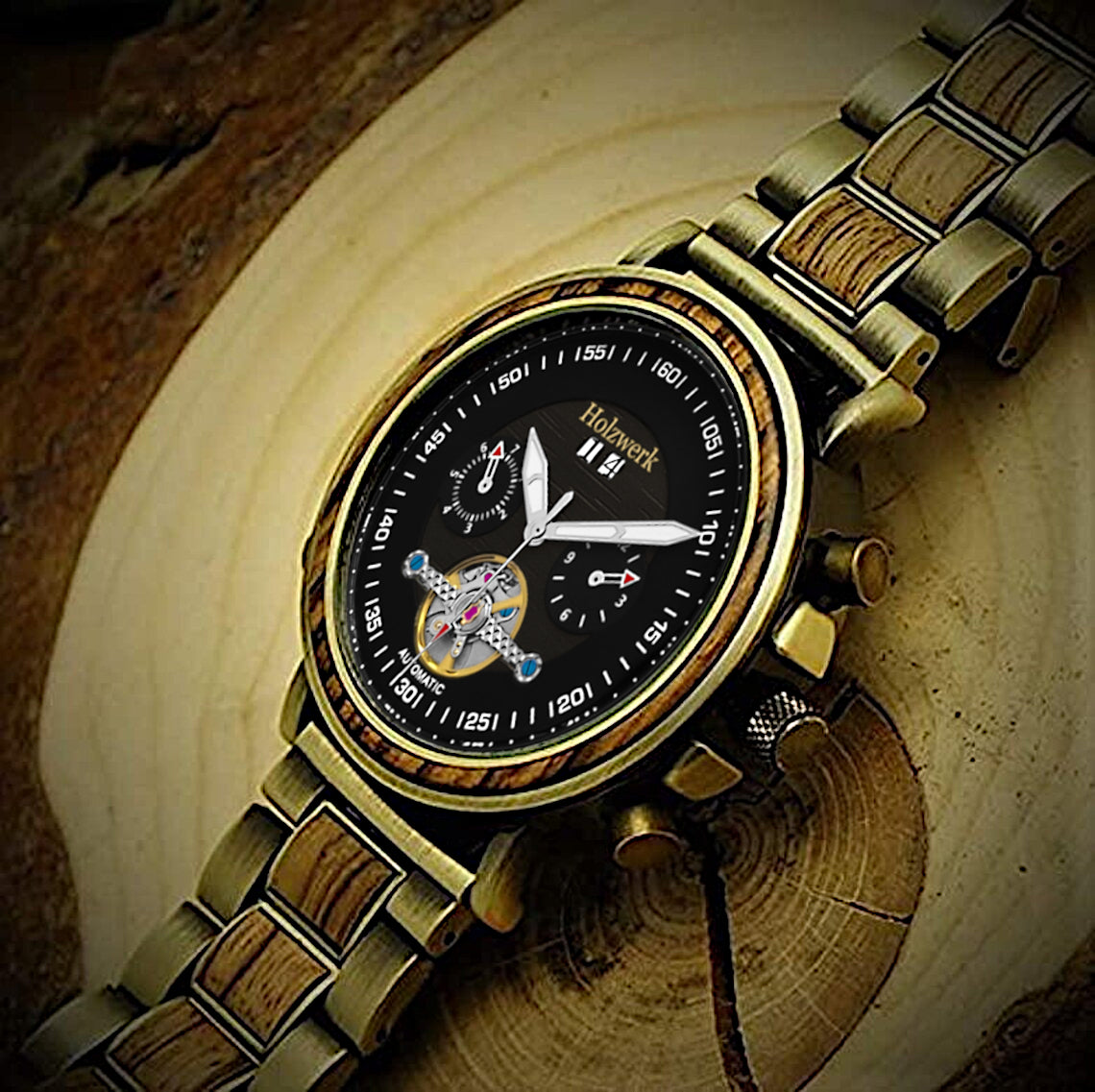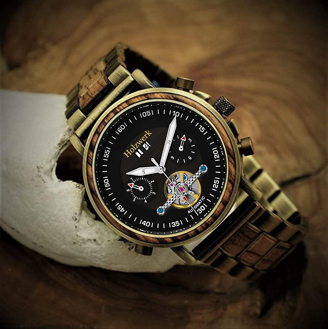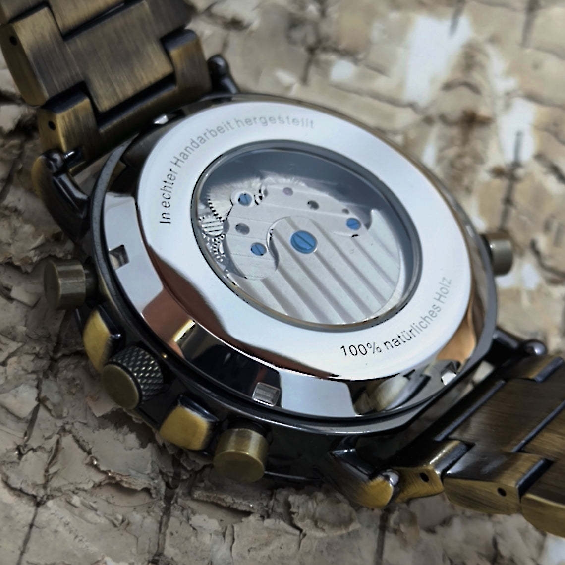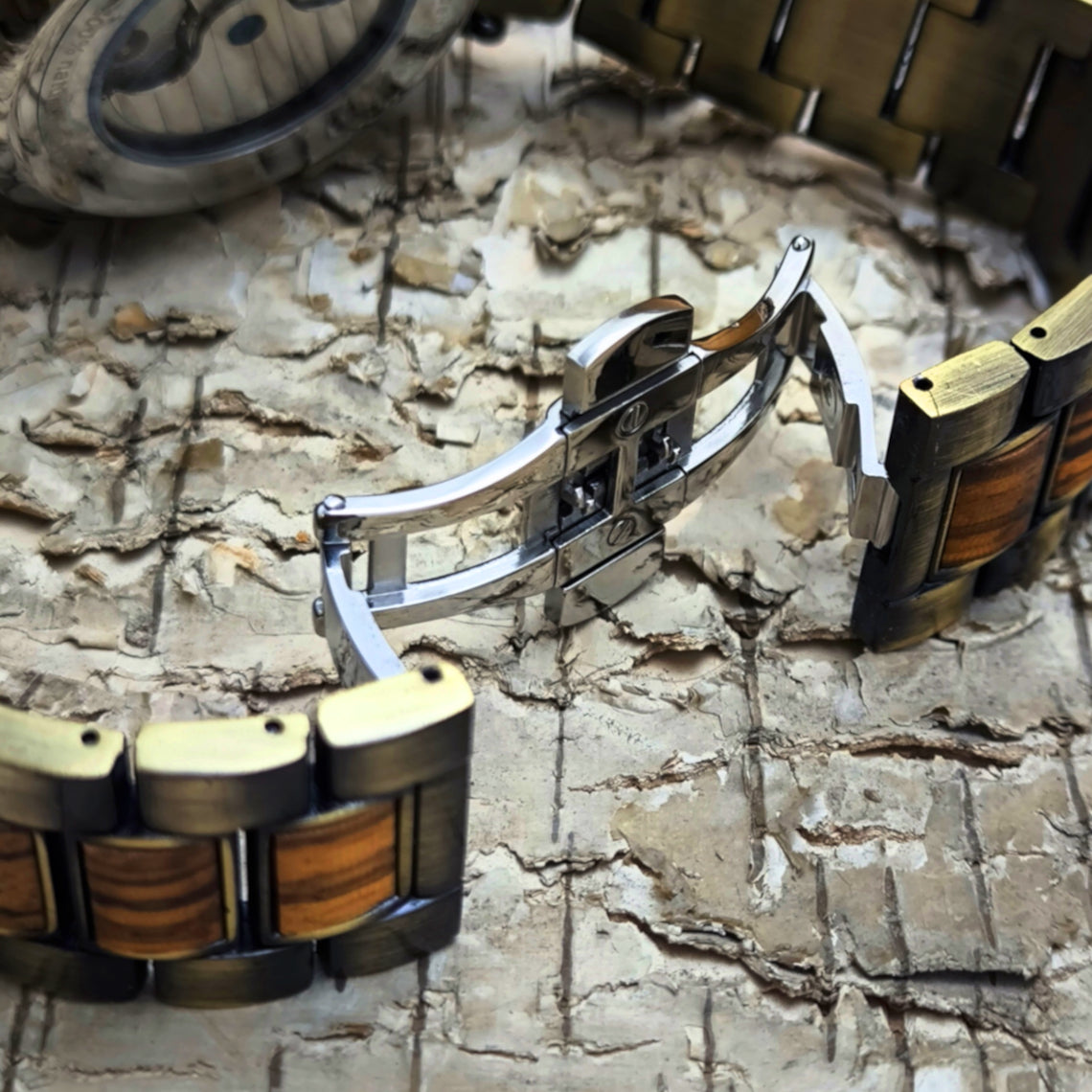 - Matériau du bracelet : acier inoxydable avec éléments en bois
