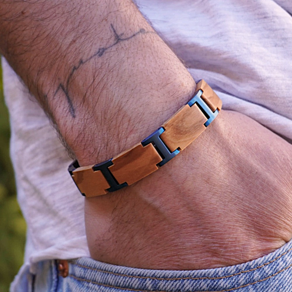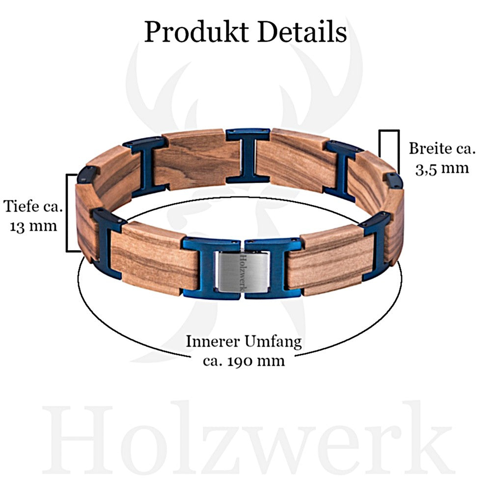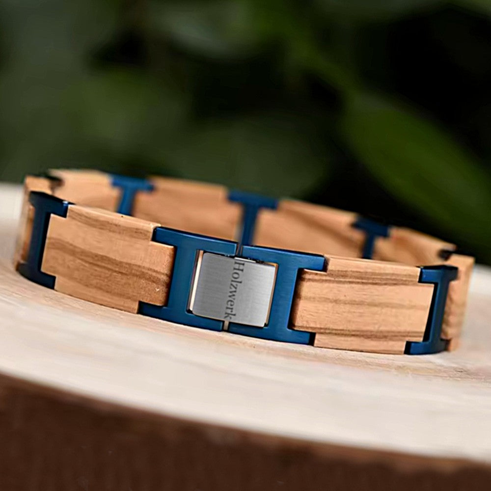 Bois naturel et acier inoxydable combinés à une construction de maillons spéciale inspirée de l'industrie horlogère. Profitez de l'aspect et de la sensation uniques du bois combinés à l'acier inoxydable le plus fin et laissez-vous inspirer par le confort de port. Grâce à nos designs spéciaux fabriqués à partir de matériaux de haute qualité, votre bracelet Holzwerk est une pièce véritablement unique à votre poignet.