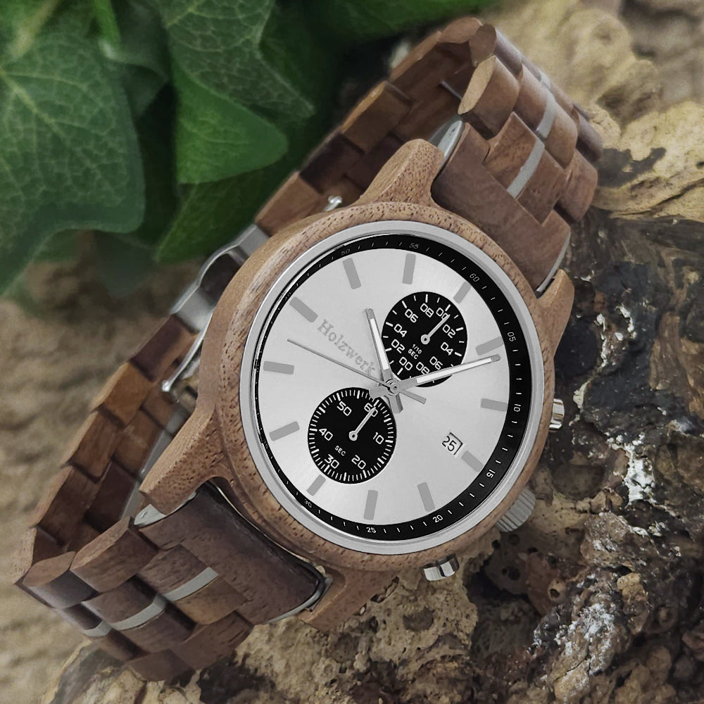 - Matériau du bracelet : bois avec éléments en acier inoxydable