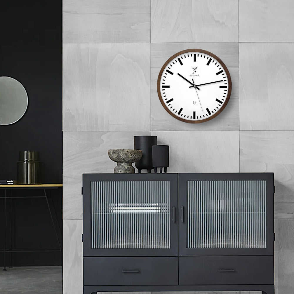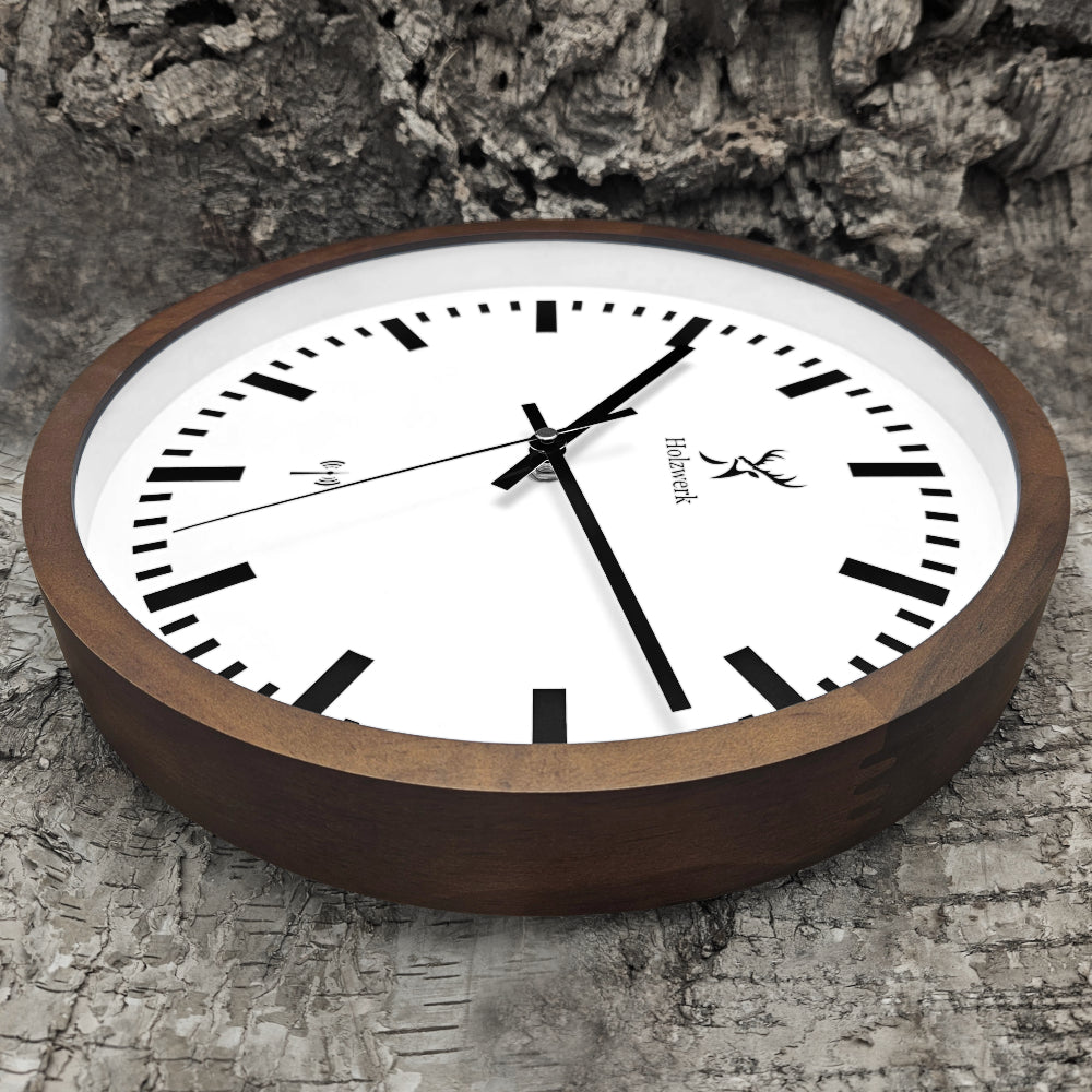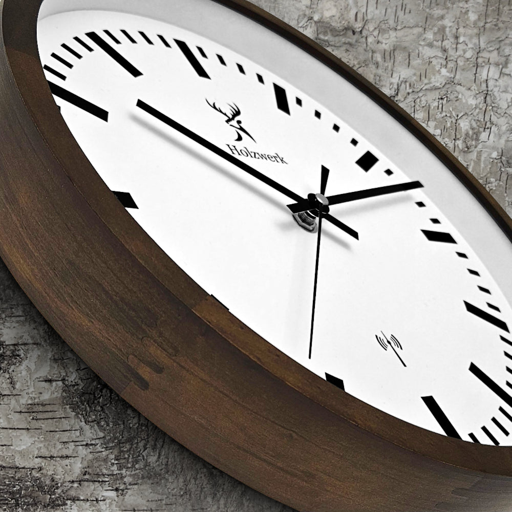 Les horloges murales Holzwerk contiennent un mécanisme d'horlogerie pratiquement silencieux ! L'horloge murale est alimentée par une pile LR6.R6P / 1,5 V AA, qui n'est pas incluse.