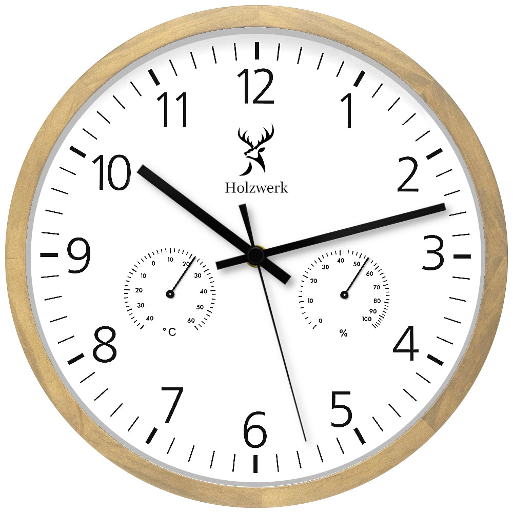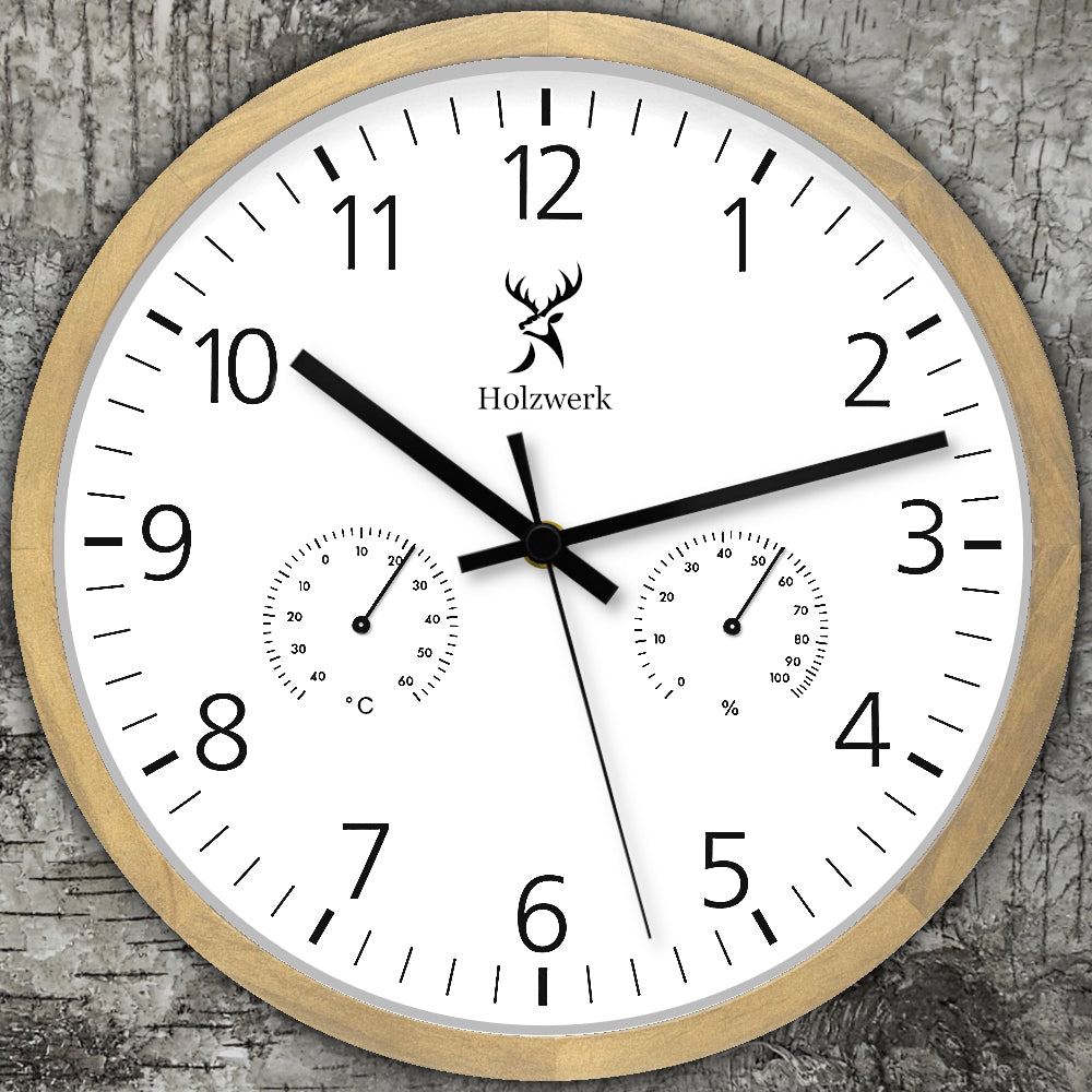REMARQUE : En raison de l'utilisation de bois véritable, chaque horloge murale est absolument unique en raison du grain et des dégradés de couleurs légèrement différents.