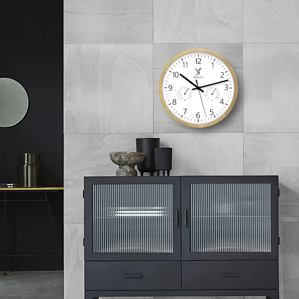 Les horloges murales Holzwerk contiennent un mécanisme d'horlogerie pratiquement silencieux ! L'horloge murale est alimentée par une pile LR6.R6P / 1,5 V AA, qui n'est pas incluse.