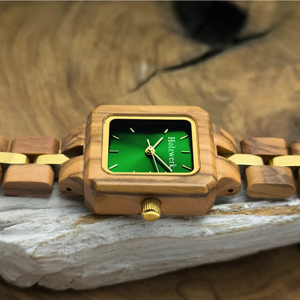 • Matériau du bracelet : bois avec éléments en acier inoxydable
