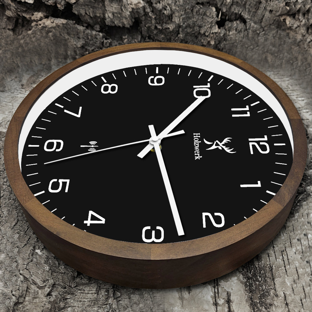 Les horloges murales Holzwerk contiennent un mécanisme d'horlogerie pratiquement silencieux ! L'horloge murale est alimentée par une pile LR6.R6P / 1,5 V AA, qui n'est pas incluse.